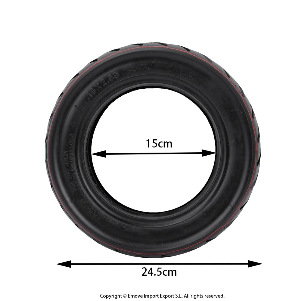 10x2.5 tire from CST. This tire is not tubeless; it requires an inner tube to operate.